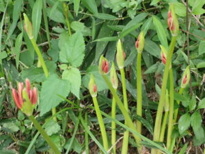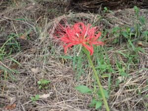 こちらはヒガンバナの蕾と花です。別名ハミズハナミズです。