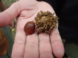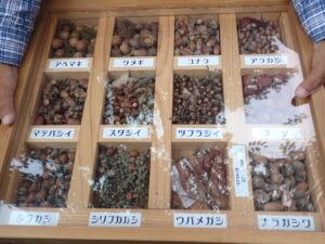 畜産センターのビジターハウスに、様々なドングリの実の標本があったので、それも使って解説がありました。