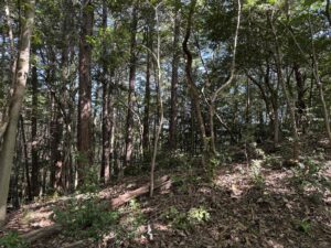 作業した後は、切った後の木の山がいくつもできて、山が明るくなりました。