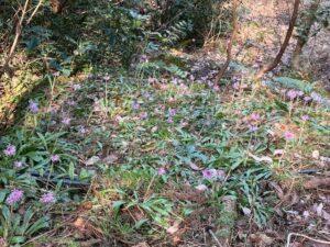 ショウジョウバカマが見ごろで綺麗な紫色の絨毯のようでした。