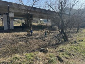 今日の保全活動では、達目洞周辺のごみ拾いと、達目洞内で剪定された木の枝を高架下まで運びました。