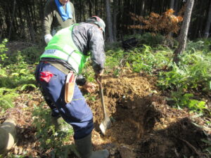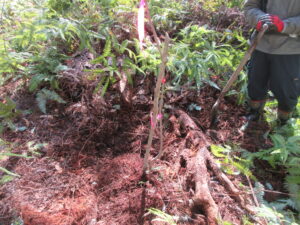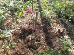 今回は5株を植栽し、陽当たりが良く比較的水はけが良いと思われる場所を選定し、山の尾根に多く植栽しました。